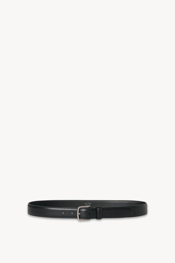 Classic structured belt in smooth calfskin leather with metal buckle and fixed loop.
