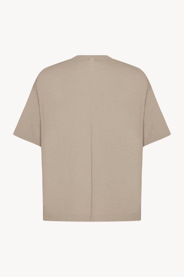 Crewneck t-shirt in extra fine wool with boxy fit, ribbed collar, and signature center back detail.