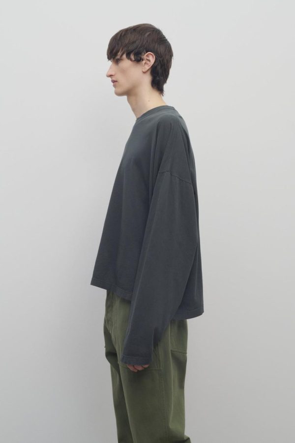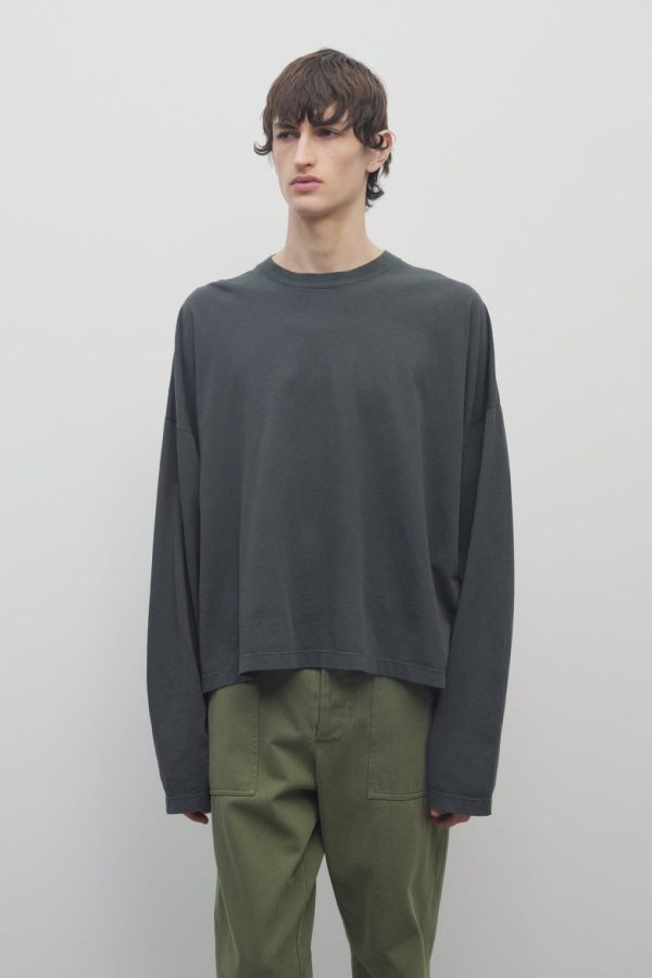 Boxy long-sleeved t-shirt in organic cotton jersey with dropped shoulders and ribbed crewneck.