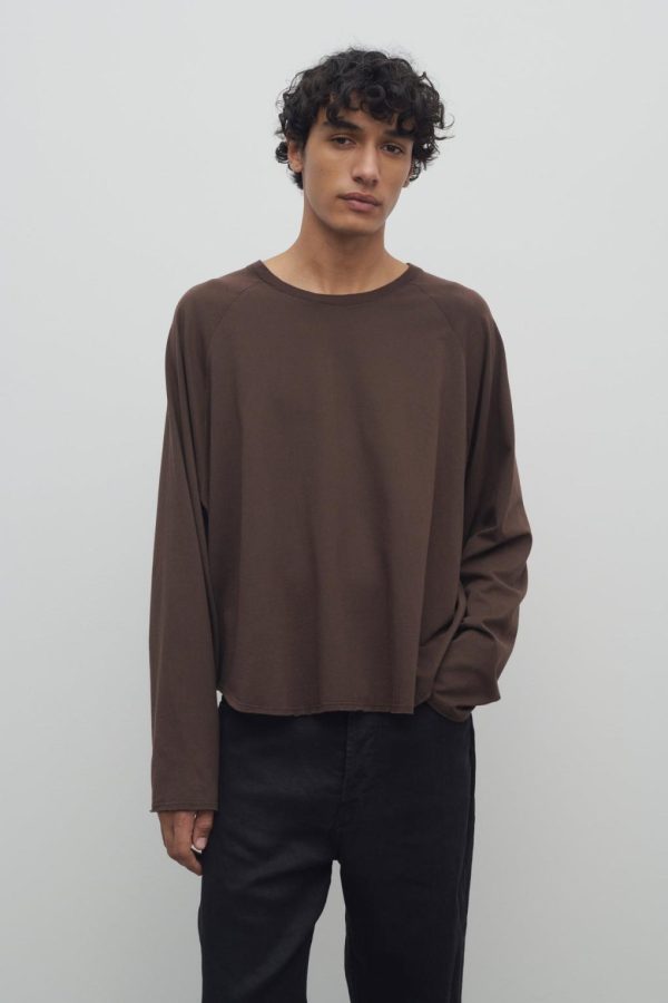 Long-sleeved baseball t-shirt in soft cotton jersey with raglan sleeves, ribbed crewneck, and boxy fit.