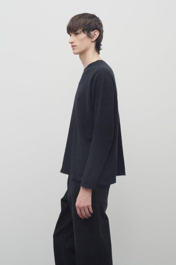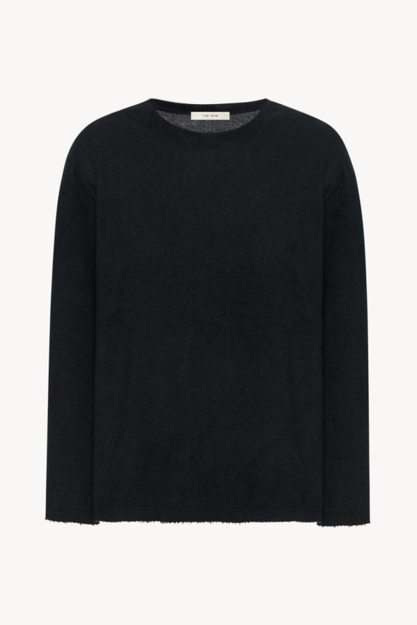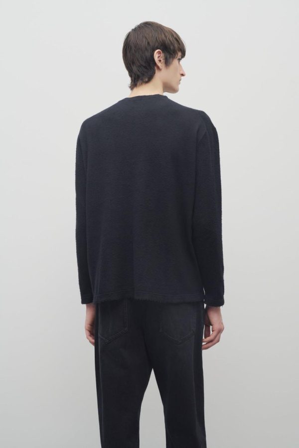 Long-sleeved crewneck top in softly brushed fine cotton with ribbed neckline and relaxed fit.