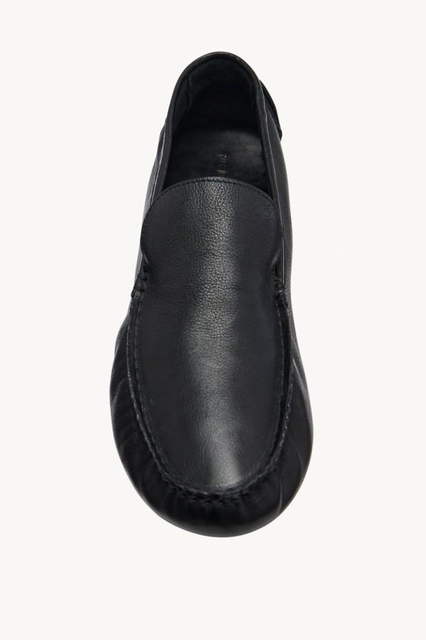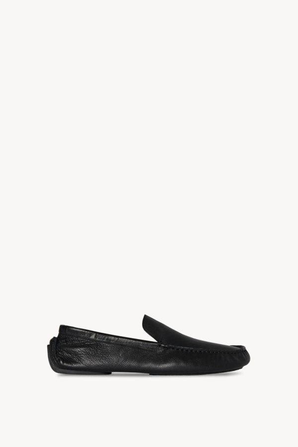 Classic moccasin in grained vegetable tanned leather with tonal piping and flexible hand-stitched construction.