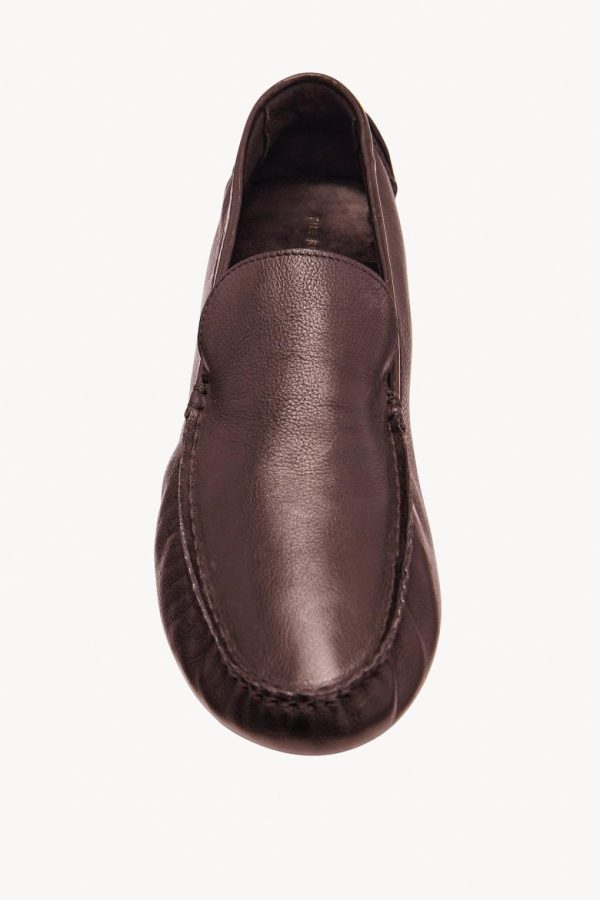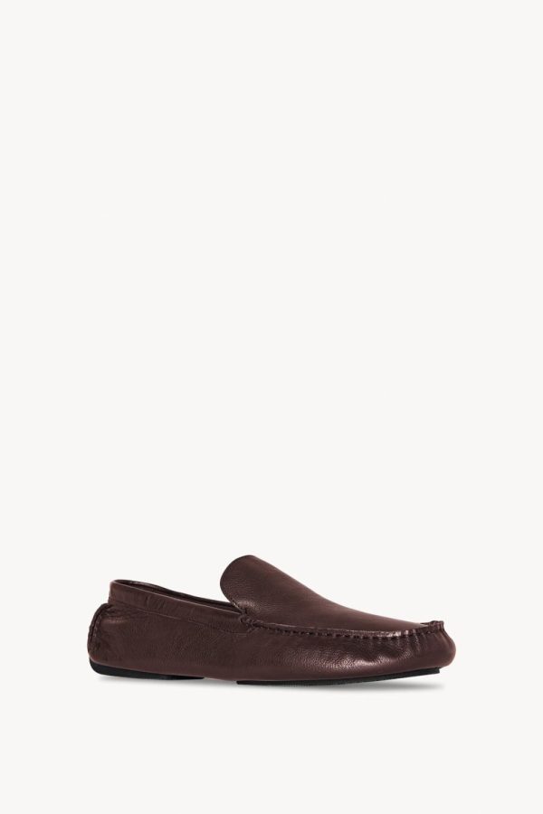 Classic moccasin in grained vegetable tanned leather with tonal piping and flexible hand-stitched construction.