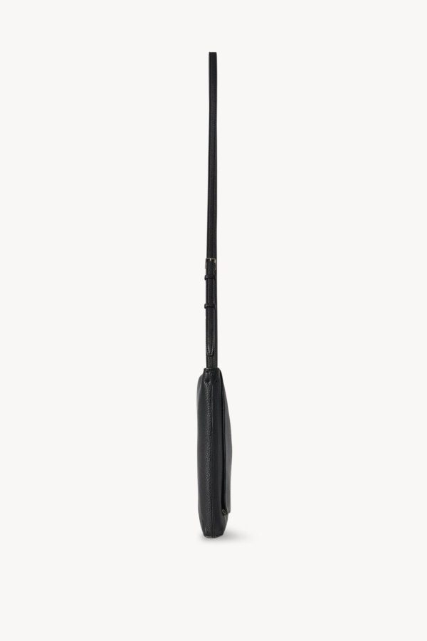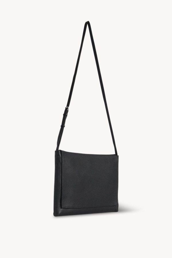 Soft messenger bag in durable deerskin leather with overlapped front flap, removable interior zip pocket, and adjustable strap with metal buckle.