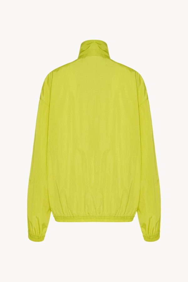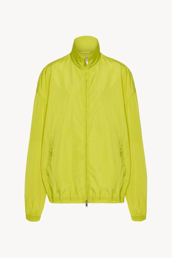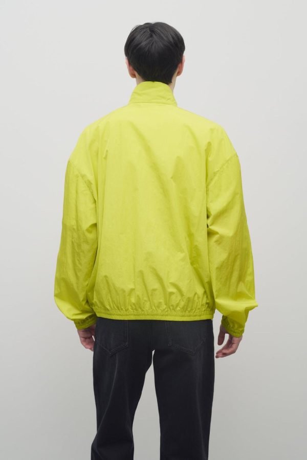 Relaxed bomber jacket in fluid technical nylon with elasticated cuffs and hem, front welt pockets, and front two-way zip closure.