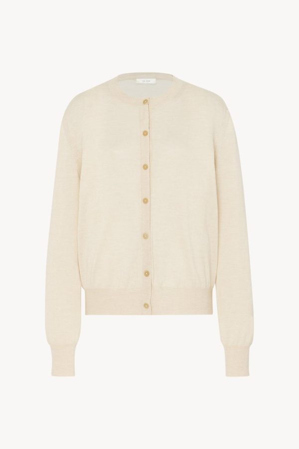 The Row Essentials cardigan sweater in superfine cashmere knit with finely ribbed neckline, cuffs and hem.