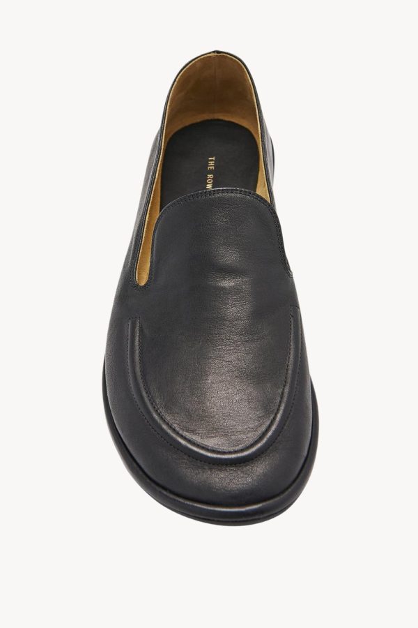 Deconstructed loafer in unlined vegetable-tanned calfskin with round toe, raised stitching toe detail and matte velvety rubber sole.