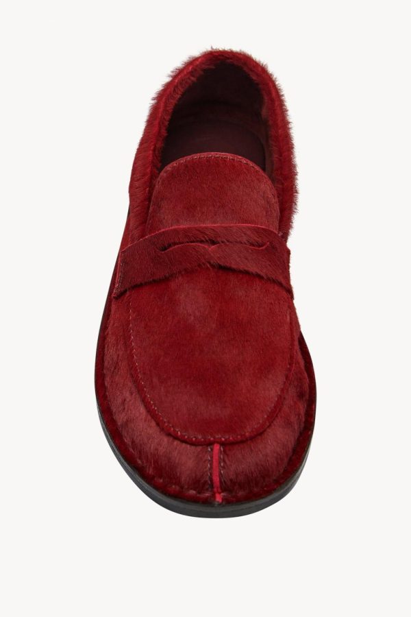 Artisanally-crafted loafer in sleek pony hair with round toe, stitched detailing, and flexible sole.