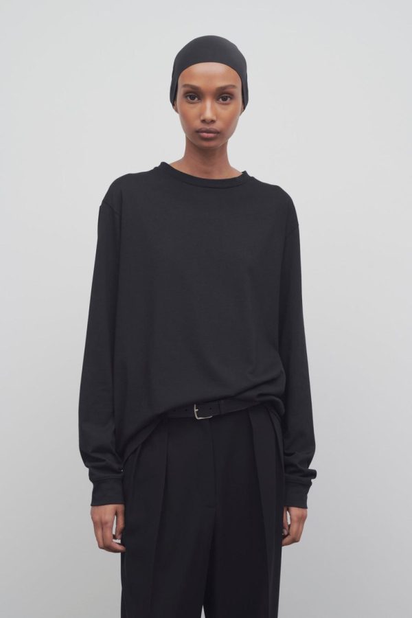 Women Ciles R T-Shirt In Organic Cotton Black | The Row T-Shirts & Tanks