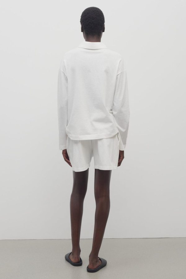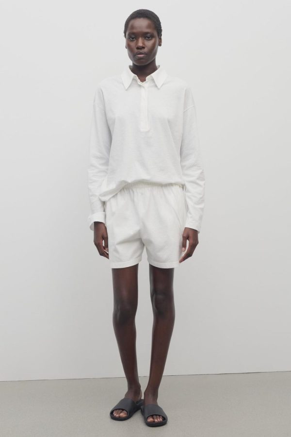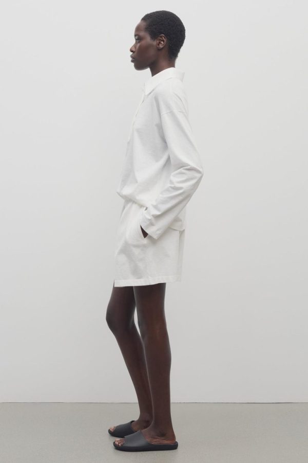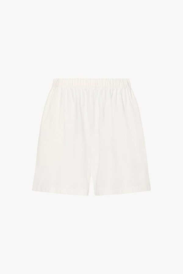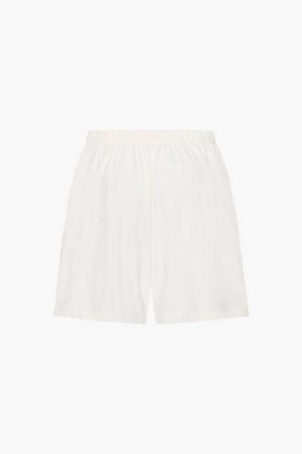 Relaxed mid-rise short in soft midweight cotton jersey with gathered elastic waistband.