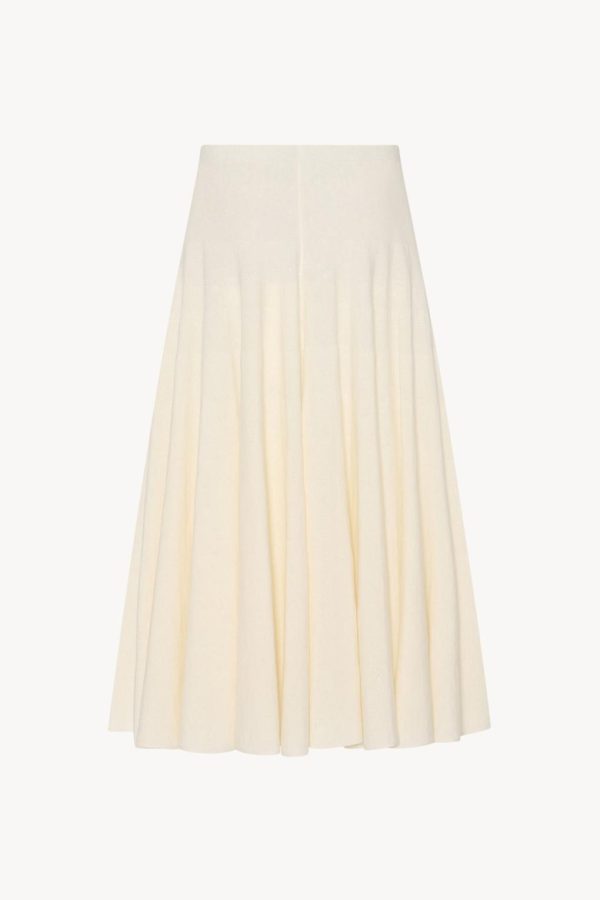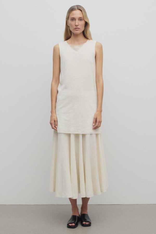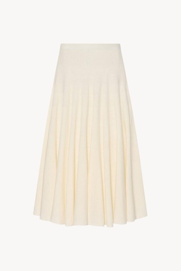 Calf-length skirt in textured linen and cotton knit with A-line silhouette and center back zip closure.