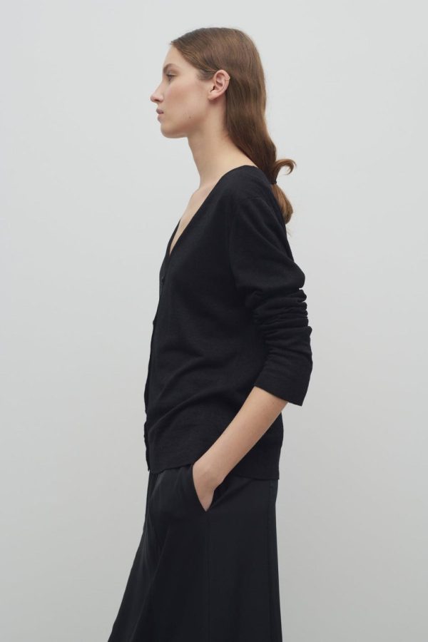 Women Jheel Cardigan In Linen Black | The Row Sweaters