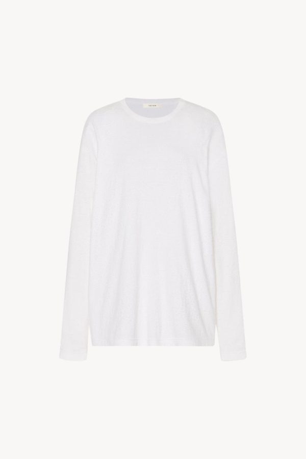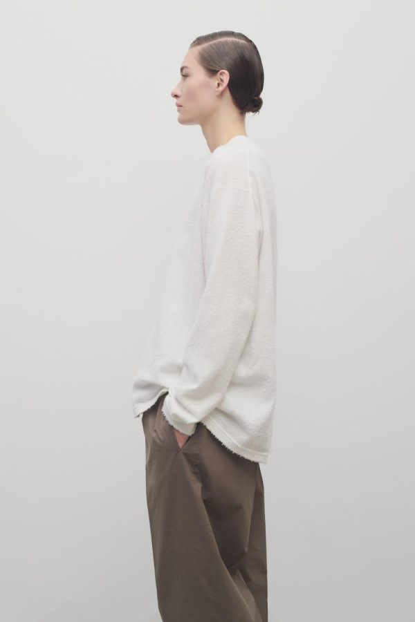 Relaxed crewneck top in softly brushed fine cotton with slightly oversized fit and ribbed neckline.