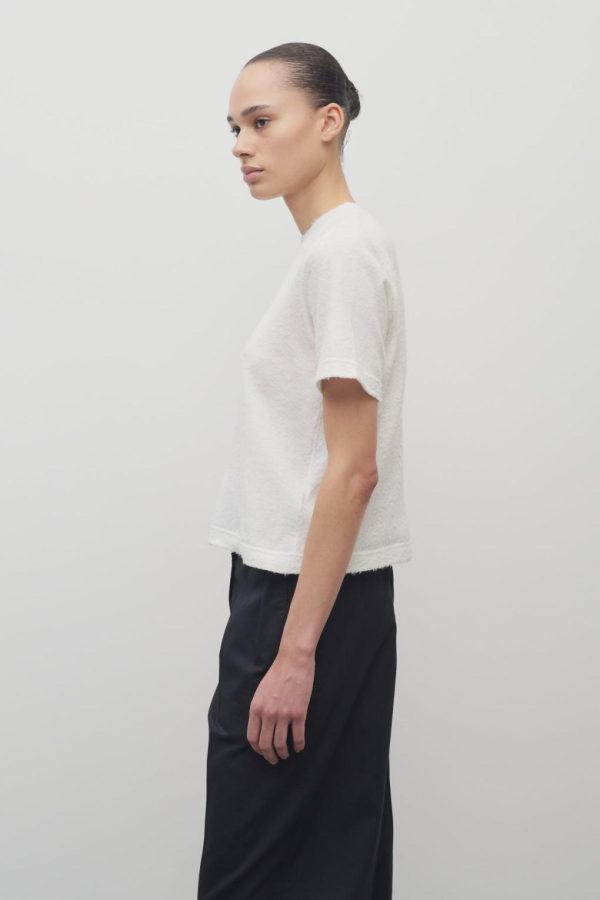 Slightly cropped t-shirt in softly brushed fine cotton with ribbed crewneck and boxy fit.