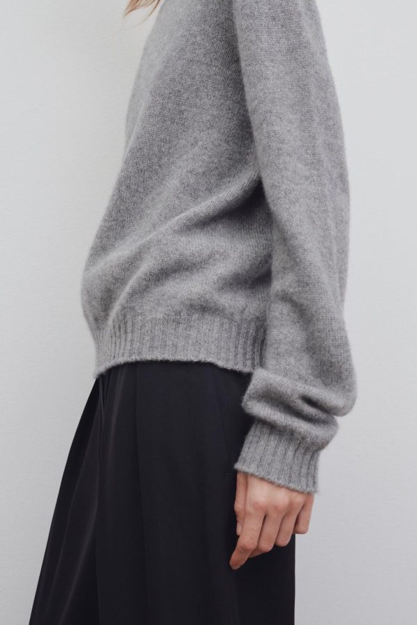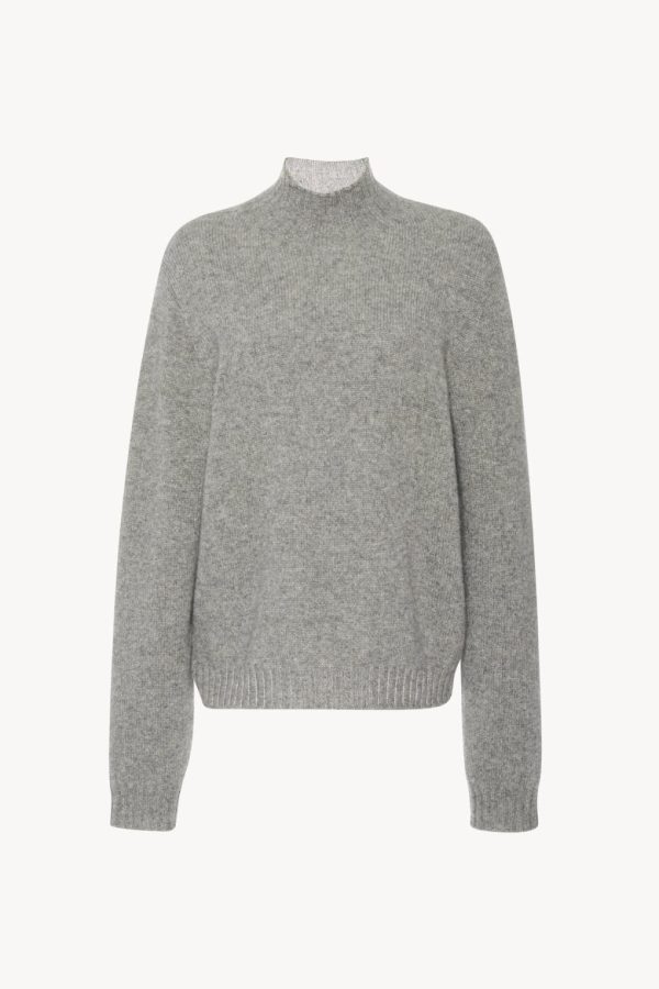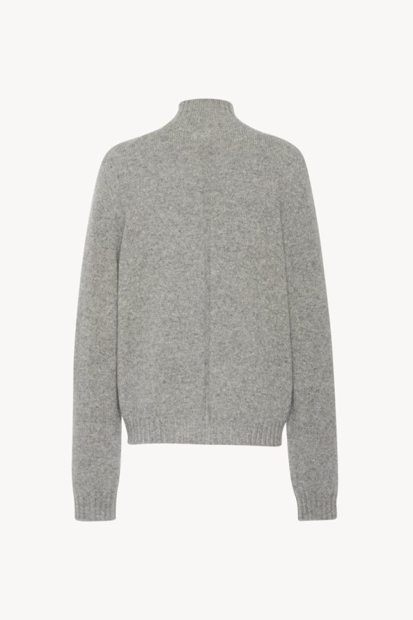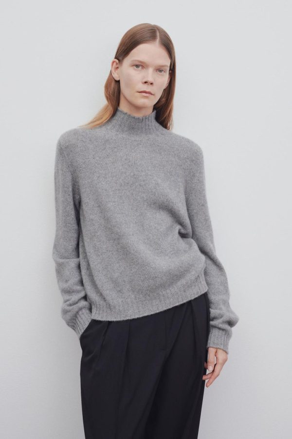 The Row Essentials sweater in foamy cashmere knit with mock turtleneck and ribbed neckline, cuffs and hem.