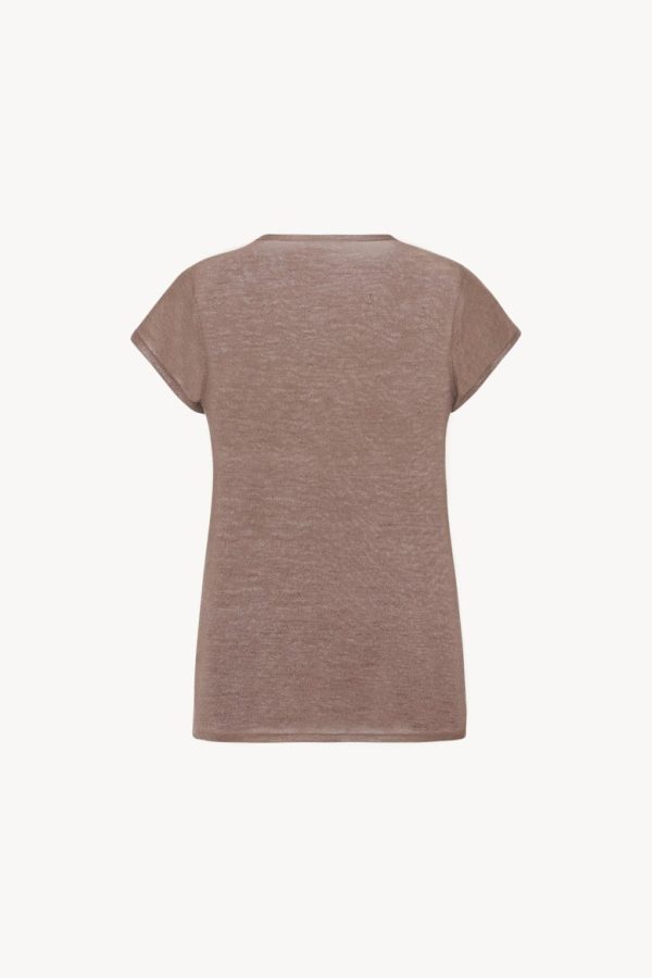 Relaxed t-shirt in ultrafine textured cashmere with rounded neckline, cap sleeves, and slim fit.