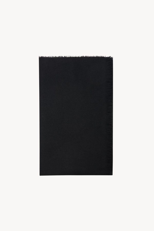 Delicate scarf in lightweight cashmere gauze with basket-weave texture and raw edge finish.