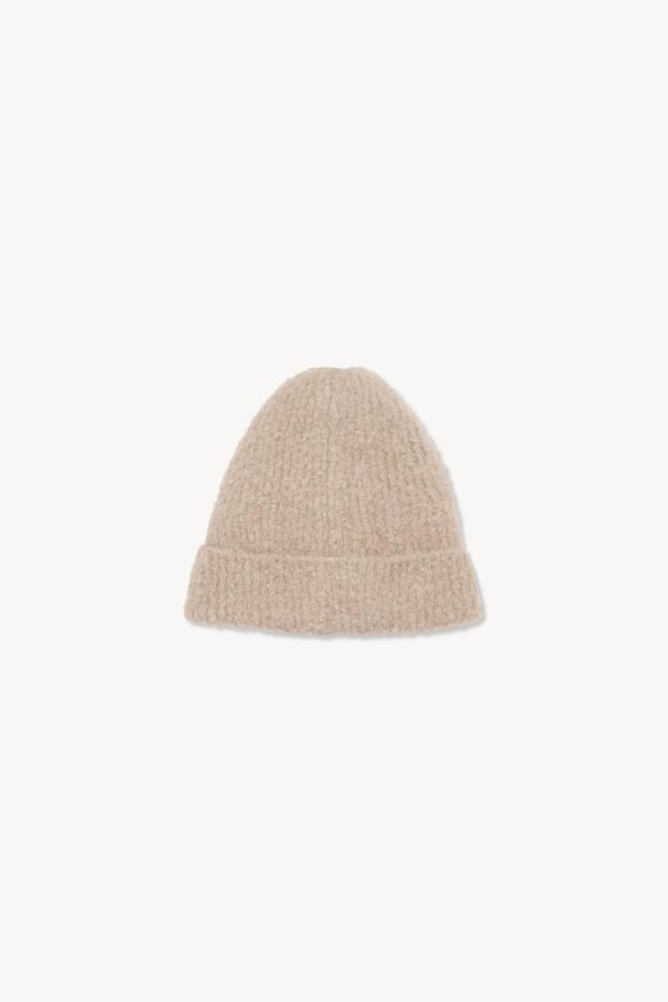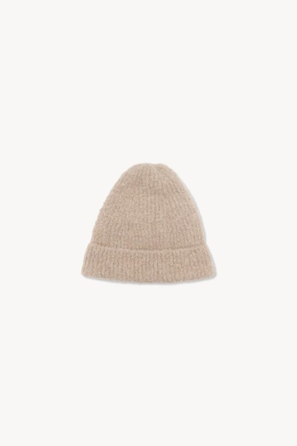 Fitted beanie in textured alpaca and cashmere bouclé with ribbed construction and clean finish.
