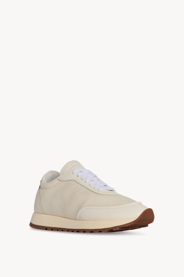 Sneaker in technical soft nylon mesh and nappa leather trim with micro rubber tread.