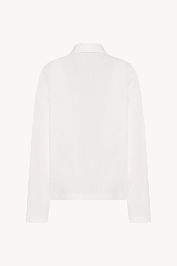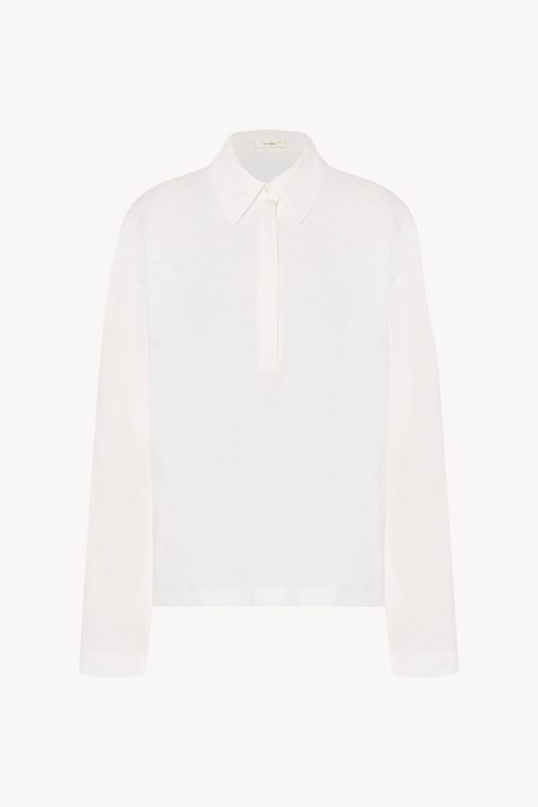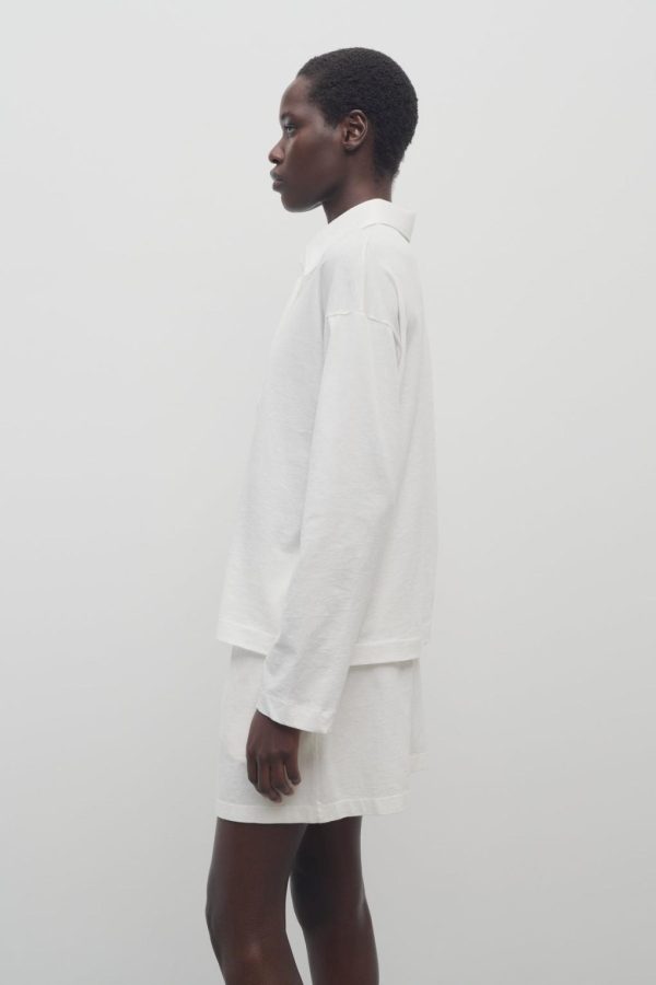 Oversized polo top in organic cotton jersey with ribbed collar and concealed front button placket.