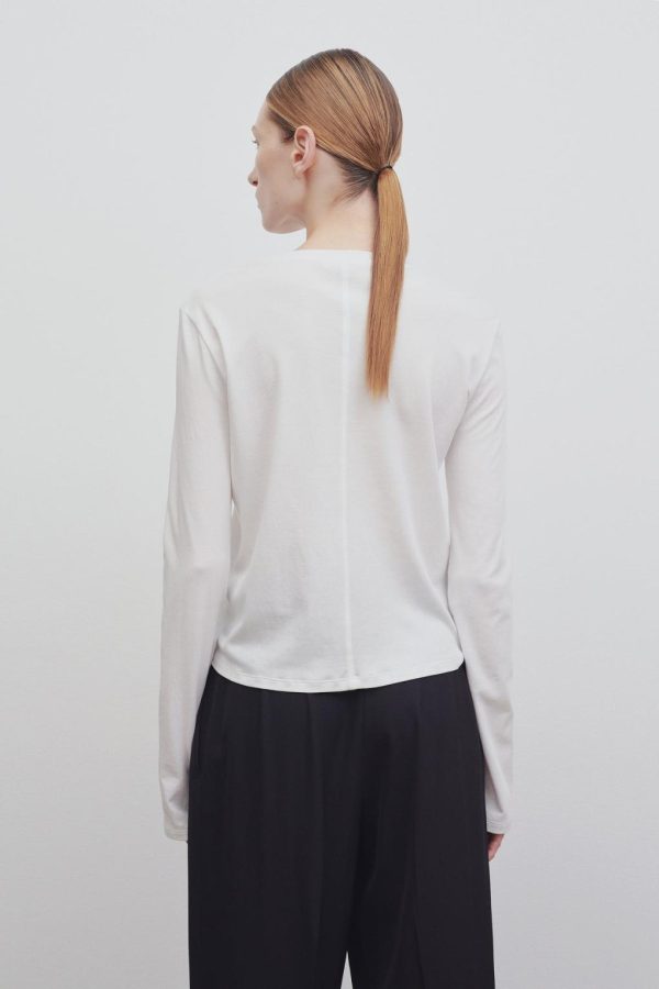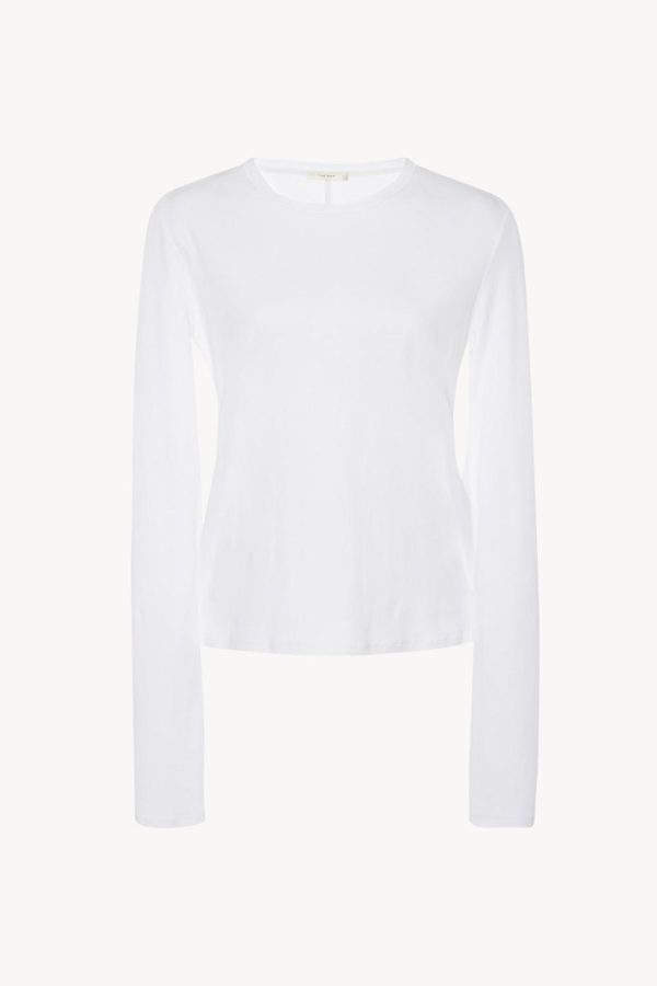 The Row Essentials long-sleeved t-shirt in ultra-soft, fluid cotton with subtly shrunken silhouette and signature French seam back detail.