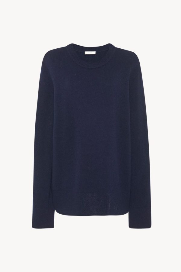 The Row Essentials crewneck sweater in midweight cashmere and wool knit with ribbed neckline, cuffs and hem.