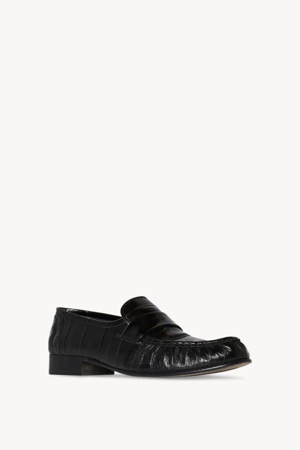 Artisanally-crafted loafer in paneled eelskin leather with natural pleating effect and hand-painted leather sole.