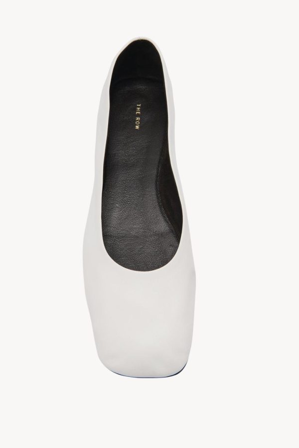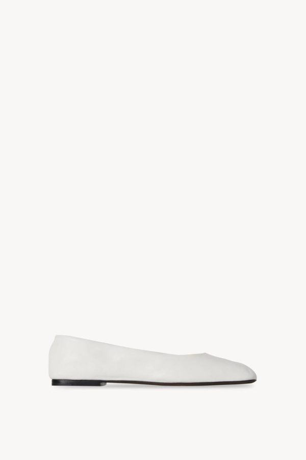 Minimal ballet flat in soft lightweight leather with squared toe and leather sole.
