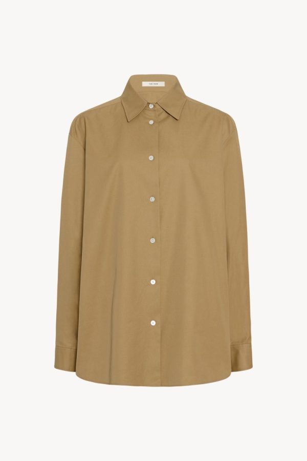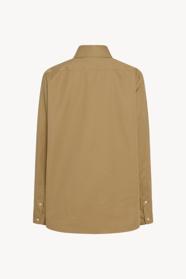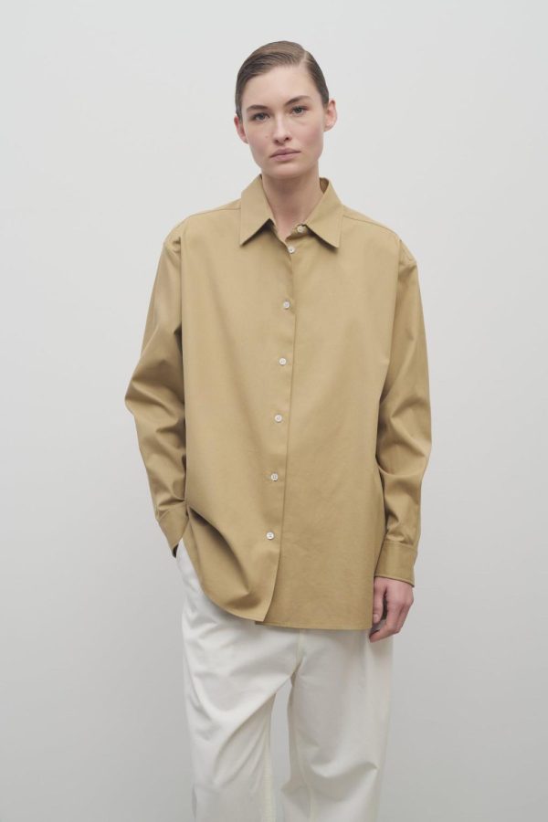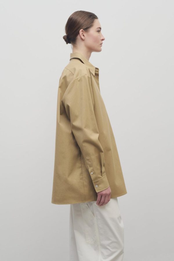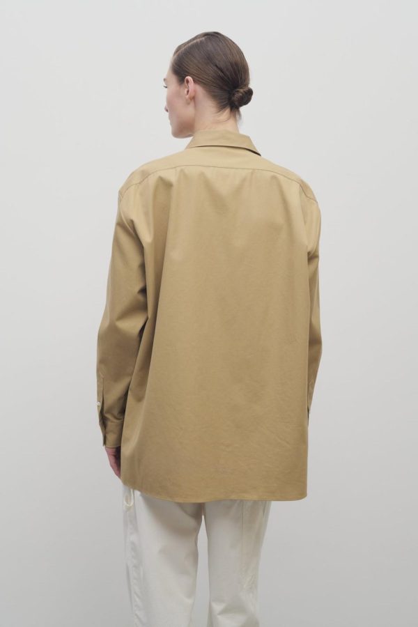 Oversized button-up shirt in soft cotton and cashmere gabardine with slim back yoke and exposed front button placket.