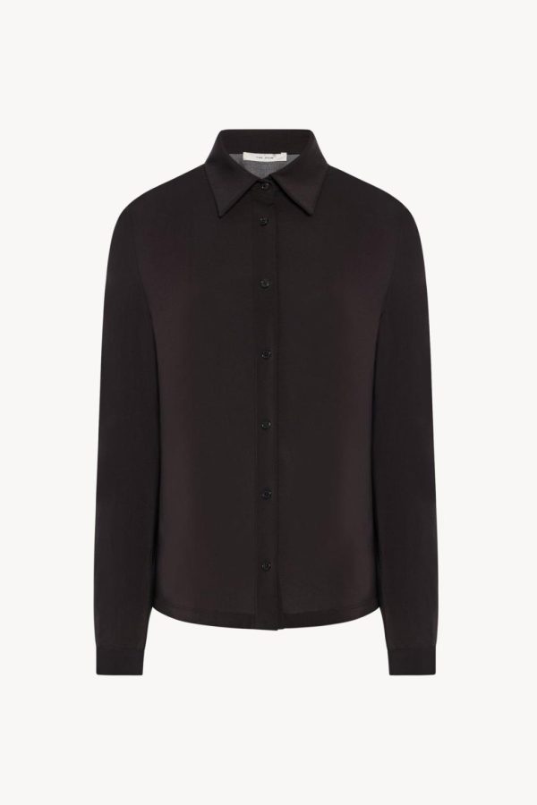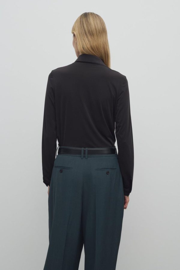Long-sleeved button-up shirt in ultra-soft jersey with slim fit and exposed placket with mother-of-pearl buttons.